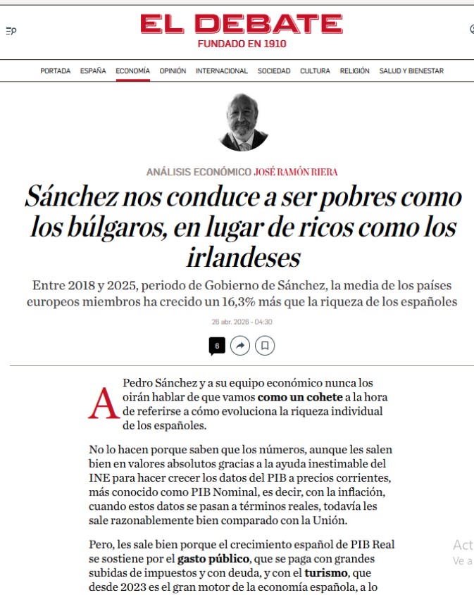 Nuestro compañero economista Riera. El Debate.com