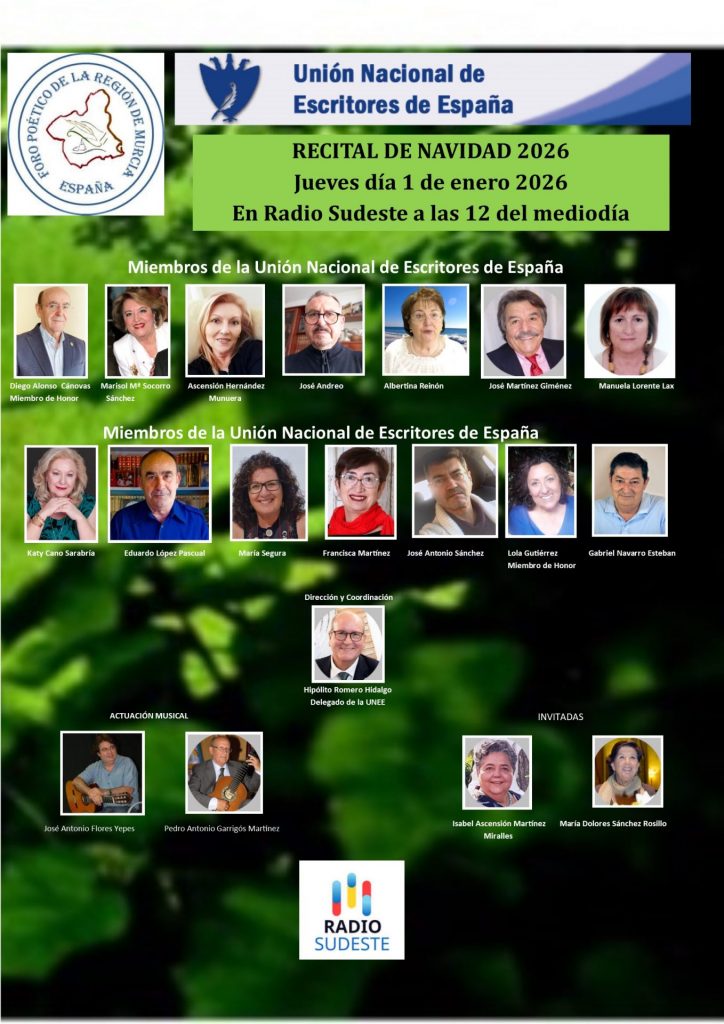 • Día 31-12-2025 LA NOCHE TEMÁTICA. Desde las 0 h. hasta las 3 de la madrugada. Foro Poético de la Región de Murcia, dirige Hipólito Romero Hidalgo.