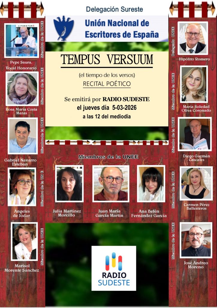 Día 5-03-2026 LA NOCHE TEMÁTICA. Desde las 23:30 h. del miércoles día 4 de marzo hasta la madrugada del jueves día 5 podréis escuchar en directo el Foro Poético de la Región de Murcia, dirige Hipólito Romero Hidalgo. Publicado elmarzo 3, 2026marzo 3, 2026AutorHipólito Romero